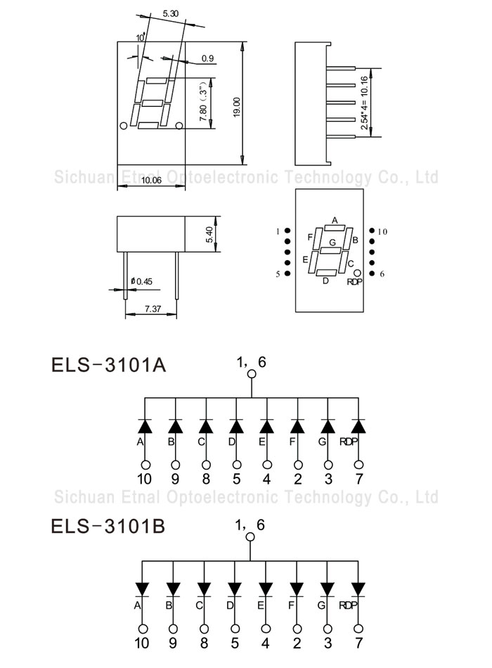 | ELS-3101BW | 0.3" 英寸 | 1位數(shù)碼管 | 共陽 | 白色 | 10-20 | 2.6-2.8 | / |