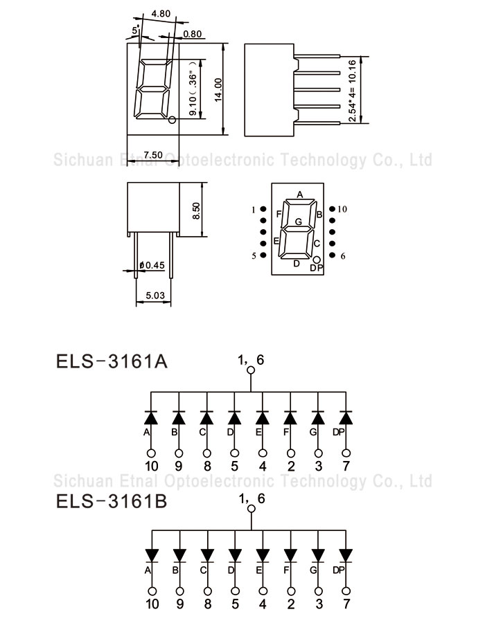 | ELS-3161BW | 0.36" 英寸 | 1位數(shù)碼管 | 共陽 | 白色 | 10-20 | 2.6-2.8 | / |