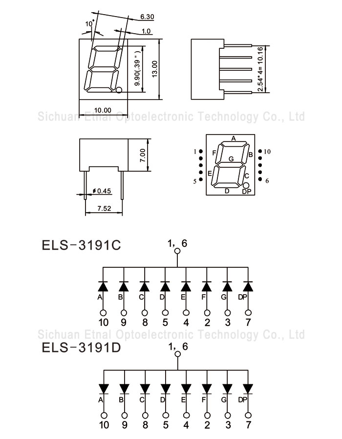 | ELS-3191DW | 0.39" 英寸 | 1位數(shù)碼管 | 共陽(yáng) | 白色 | 10-20 | 2.6-2.8 | / |