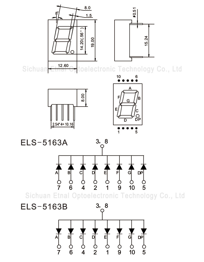 | ELS-5163AW | 0.56" 英寸 | 1位數(shù)碼管 | 共陰 | 白色 | 10-20 | 2.6-2.8 | / |