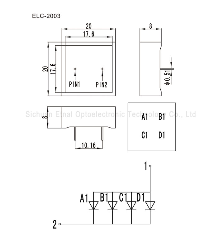 | ELC-20032O | 20X20mm | 定制模塊 | 橙色 | 5-20 | 1.8-2.0 | 600-610 |