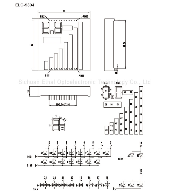 | ELC-5304GG | 53X53mm | 定制模塊 | 翠綠 | 10-20 | 2.6-2.8 | 515-525 |