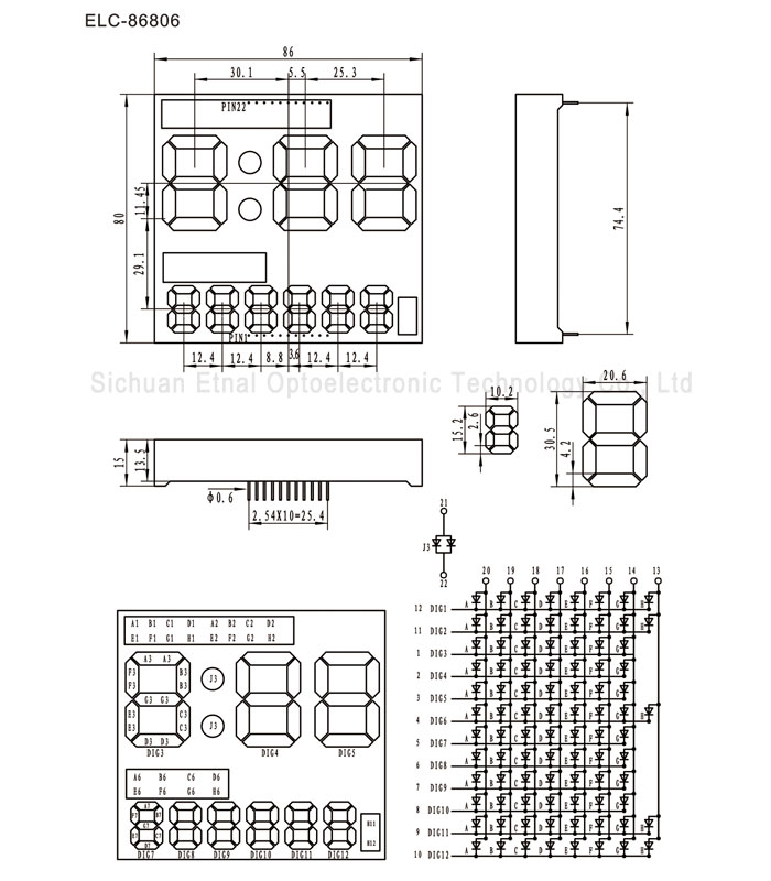 | ELC-86806G | 86X80mm | 定制模塊 | 黃綠 | 5-20 | 1.8-2.0 | 565-575 |