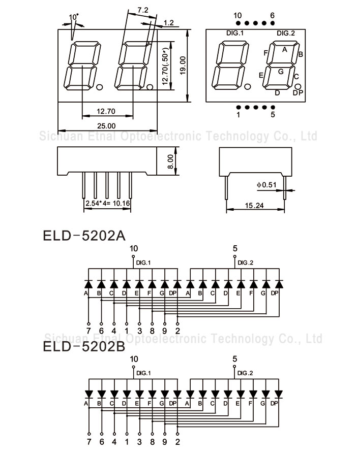 | ELD-5202BW | 0.5" 英寸 | 2位數(shù)碼管 | 共陽 | 白色 | 10-20 | 2.6-2.8 | / |