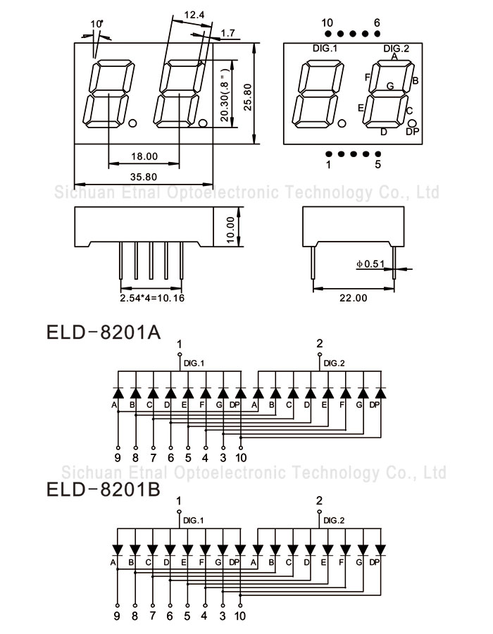 | ELD-8201AW | 0.8" 英寸 | 2位數(shù)碼管 | 共陰 | 白色 | 10-20 | 2.6-2.8 | / |
