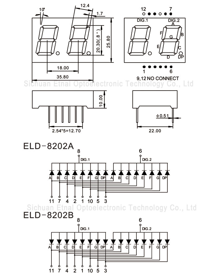 | ELD-8202AW | 0.8" 英寸 | 2位數(shù)碼管 | 共陰 | 白色 | 10-20 | 2.6-2.8 | / |
