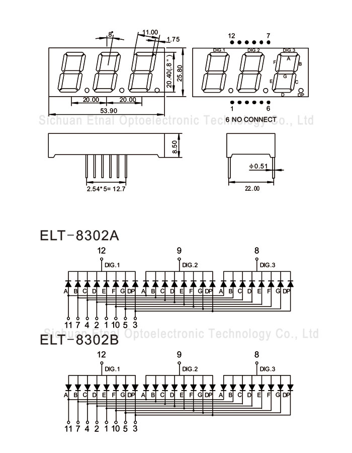 | ELT-8302AW | 0.8" 英寸 | 3位數(shù)碼管 | 共陰 | 白色 | 10-20 | 2.6-2.8 | / |
