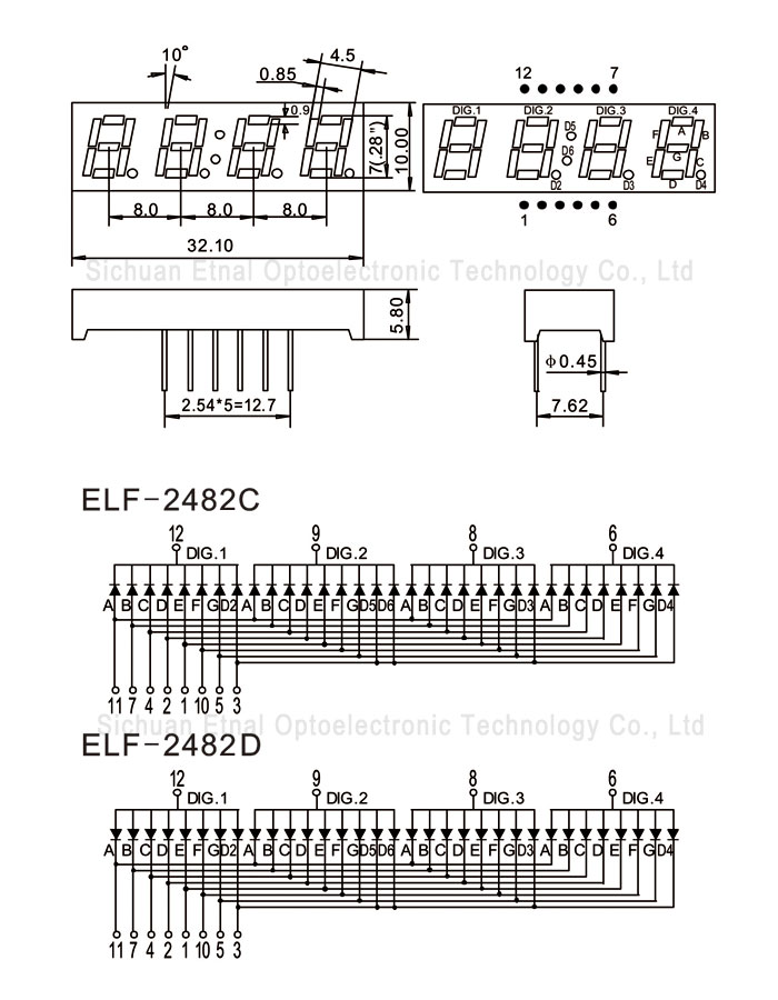 ELF-2482CS 0.28" 英寸 4位數(shù)碼管 共陰 紅色 5-20 1.8-2.0 620-640