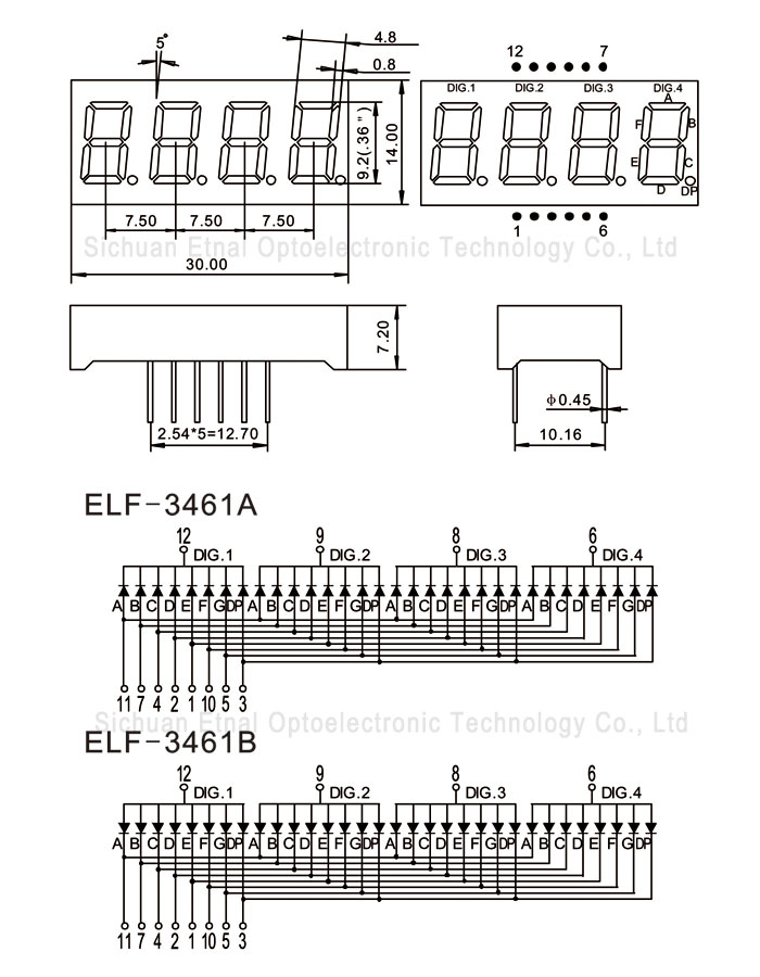 | ELF-3461AW | 0.36" 英寸 | 4位數(shù)碼管 | 共陰 | 白色 | 10-20 | 2.6-2.8 | / |