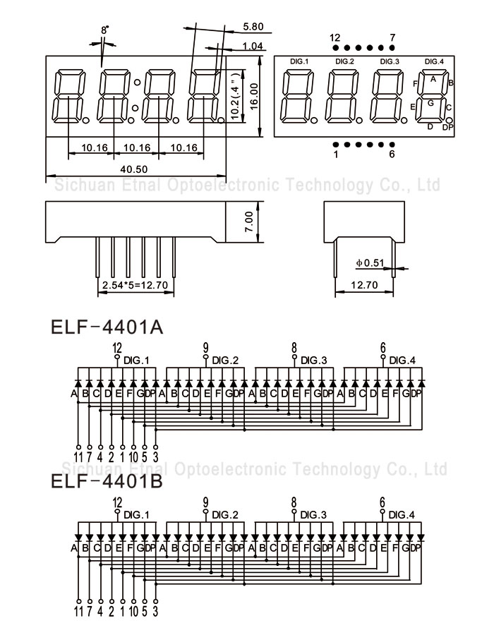 | ELF-4401AG | 0.4" 英寸 | 4位數(shù)碼管 | 共陰 | 黃綠 | 5-20 | 1.8-2.0 | 565-575 |