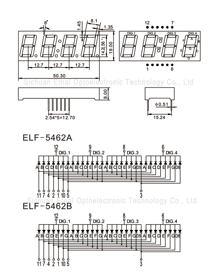 ELF-5462BS 0.56" 英寸 4位數(shù)碼管 共陽 紅色 5-20 1.8-2.0 620-640