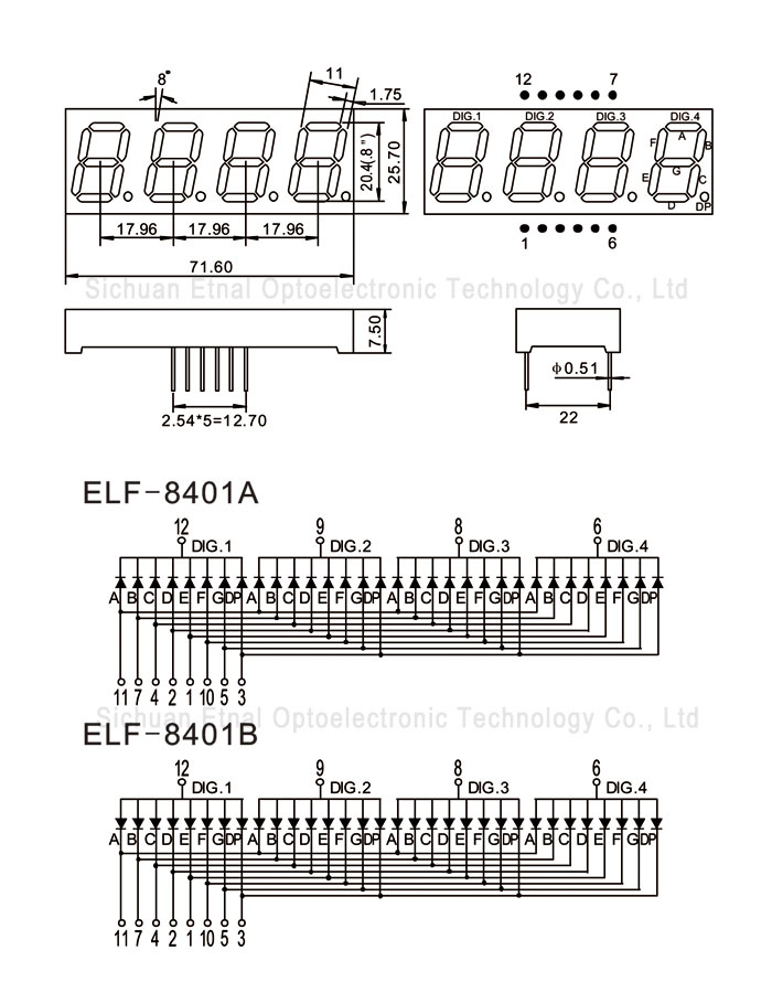 ELF-8401AB 0.8" 英寸 4位數(shù)碼管 共陰 藍(lán)色 10-20 2.6-2.8 460-470
