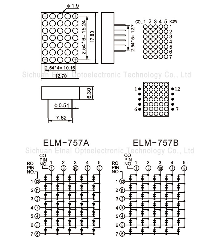 ELM-757BW 0.7" 英寸 1.9mm 5X7 點(diǎn)陣管 共陽(yáng) 白色 10-20 2.6-2.8 /