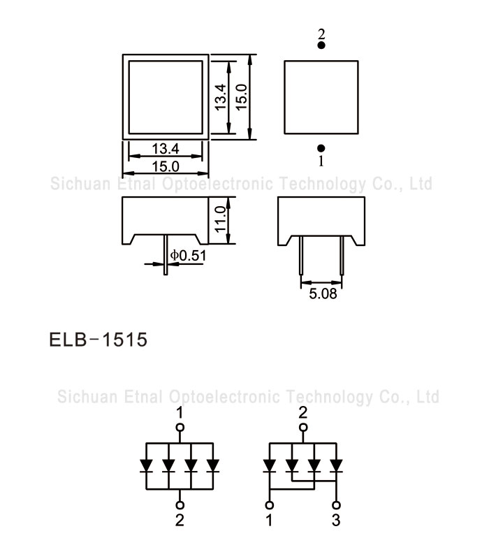| ELB-1515S | 15X15mm | 平面管 | 紅色 | 5-20 | 1.8-2.0 | 620-640 |