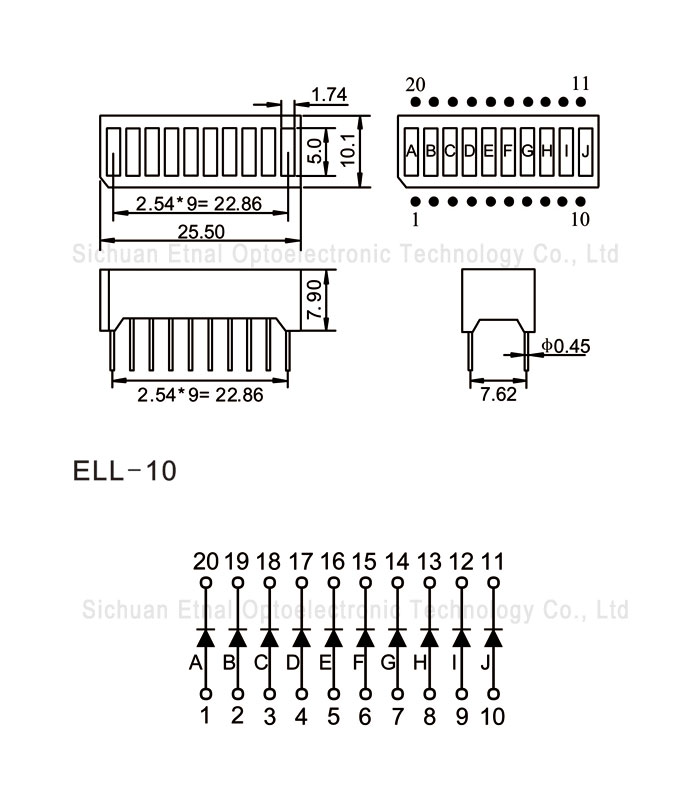 | ELL-10-S | 10段 | 光條 | 紅色 | 5-20 | 1.8-2.0 | 620-640 |